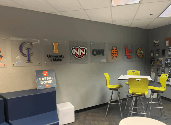 Local college and university signs reflect the higher-ed goals of many Notus High students